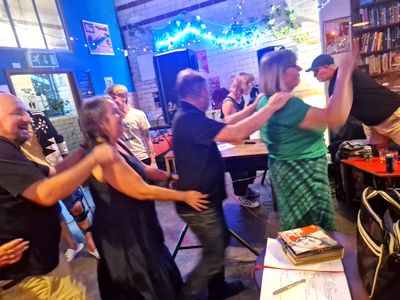 It was a bit of a mad scramble to get going – it looked like Wharf Chambers had forgotten we were coming! Thanks to Alex for leaping to the breach to set up the gear for us while still running the sound desk for the gig next door. Despite the panic we were off and running by 3pm – and we had seventeen sets of excellent tunes, with a sprinkling of interesting cover versions to enjoy. Nice to have a couple of new people playing too. This is what we heard: